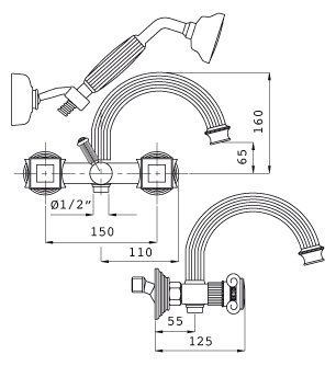 Смеситель для ванны и душа Cezares APHRODITE-V-02-M