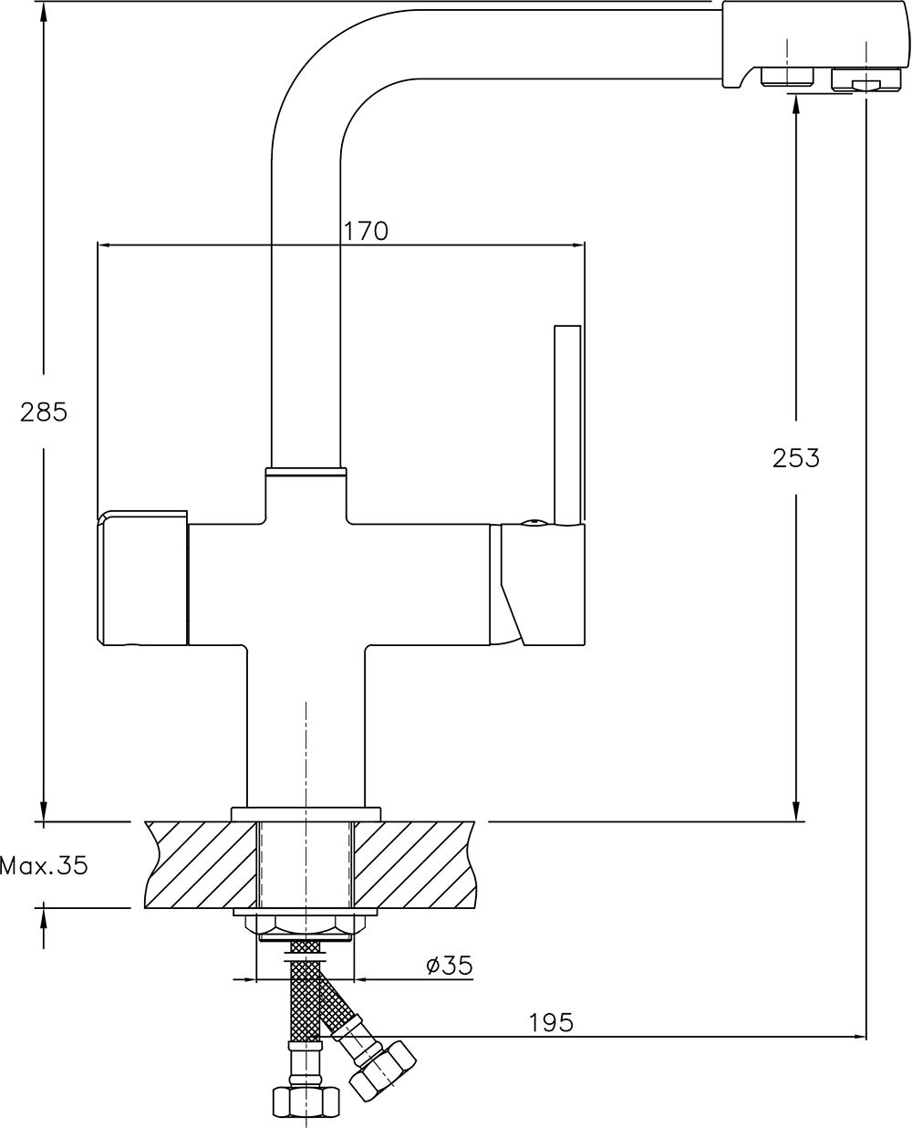 • Высота смесителя: