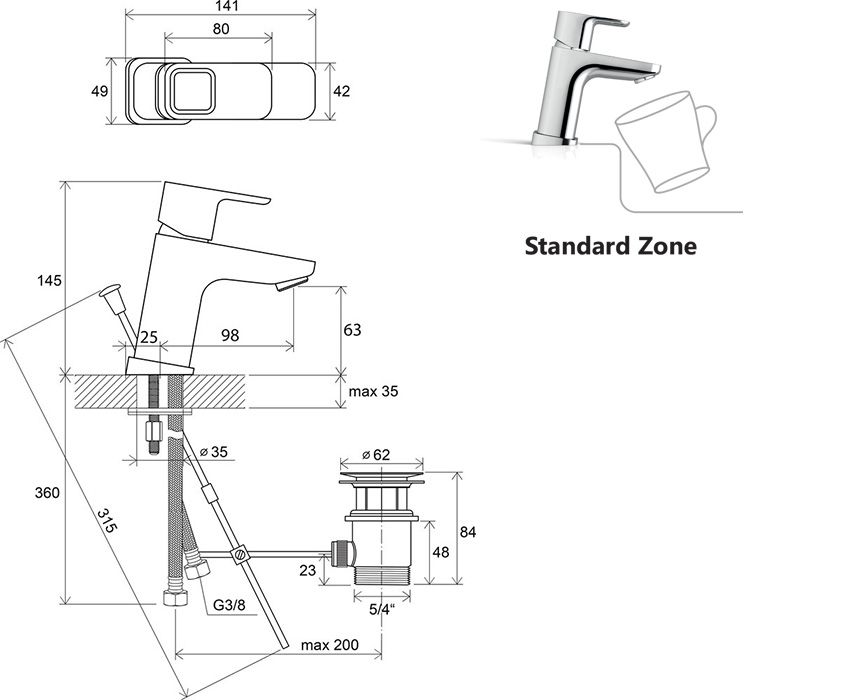 - соединительные шланги: гибкий 400 мм, диаметр G3/8