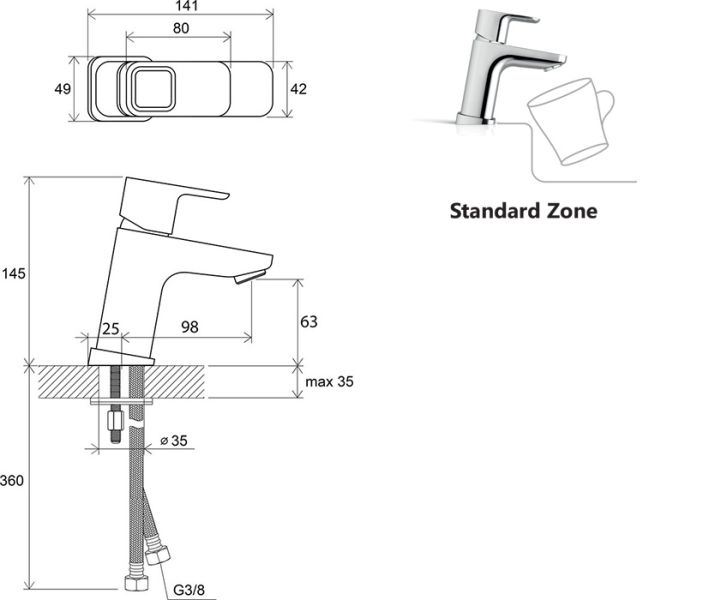 - высота смесителя: 140 мм - стандартный