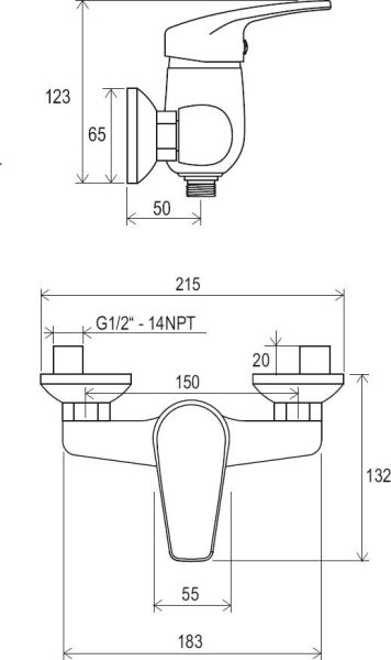 - межосевой размер смесителя : 150 мм