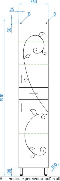 Колонна напольная бренда "Style Line" Эко Фьюжн 36. Фурнитура - хром, тонкая элегантная декоративная фрезеровка фасадов. Направляющие полного выдвижения Hettich; эксклюзивный декор "Луино" - ламинация внутренней стороны изделия; сборка изделия с помощью эксцентриковых стяжек Hafele; все материалы полностью влагостойкие