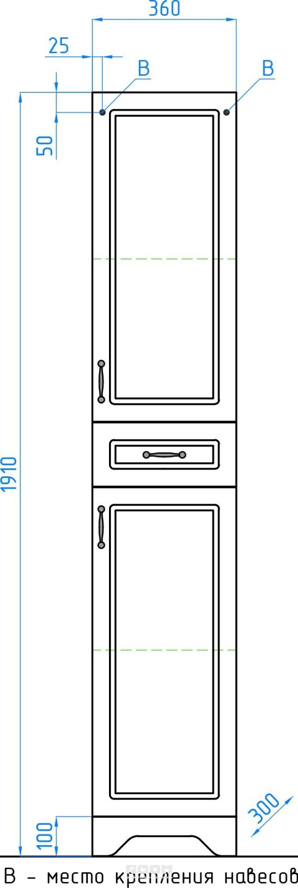Колонна напольная бренда "Style Line" коллекции "Олеандр-2" классического дизайна, декорированная ручками с керамическими вставками "под бронзу" с изящным рисунком. Направляющие полного выдвижения Hettich; сборка изделия с помощью эксцентриковых стяжек Hafele; все материалы полностью влагостойкие