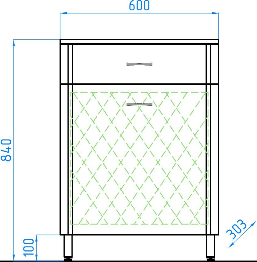 Комод бренда "Style Line" Эко Стандарт 600 с одним ящиком и встроенной корзиной. Фурнитура - хром, эксклюзивный декор "Луино" - ламинация внутренней стороны изделия. Все материалы полностью влагостойкие