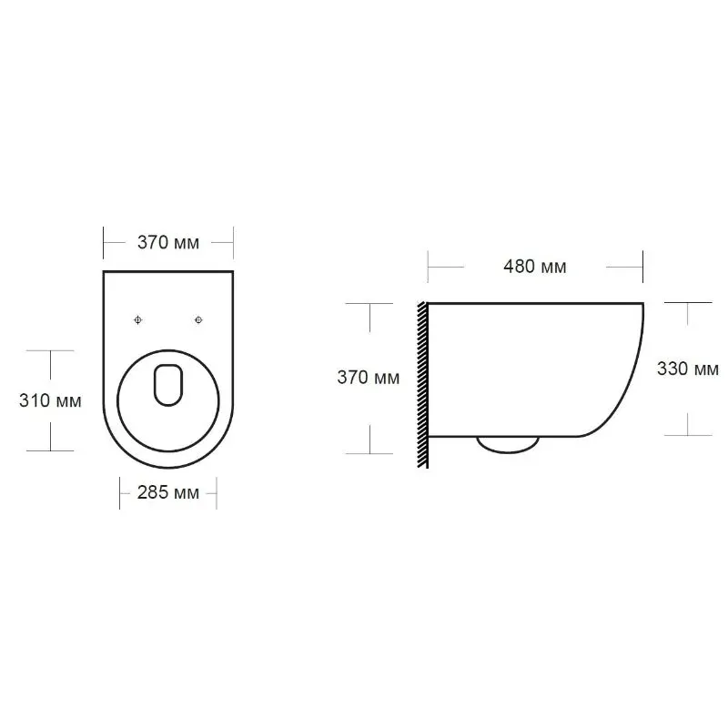 • Прилегание унитаза к стене: