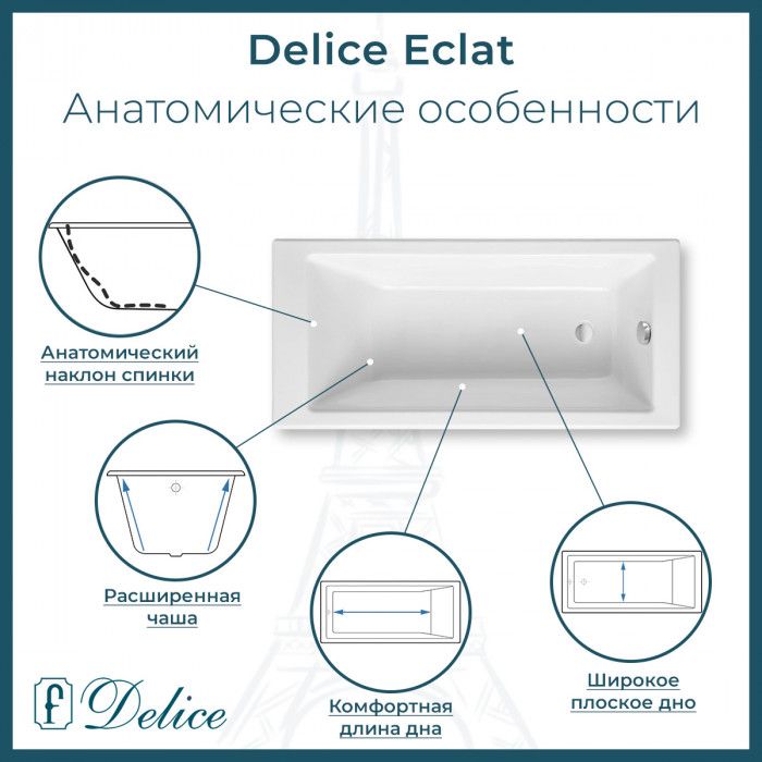 Чугунная ванна Delice - это отличный способ отвлечься от повседневных проблем и избавиться от стресса во время принятия водных процедур. Основным преимуществом ванны из чугуна является простота в уходе и устойчивость эмали ванны перед большинством механических повреждений.Прямоугольная форма ванны идеально подойдет к любому интерьерному решению. Пристенный монтаж - наиболее традиционный вид установки. Оптимальная глубина составляет 46,2 см, что позволяет принимать ванну с максимальным комфортом. Ванна Delice выполнена со строгим соблюдением всех актуальных элементов современного стиля. Ванны Delice производятся с исключительными стандартами качества, по сертифицированным технологиям, с использованием надежных безвредных материалов. Чугунна ванна Delice сделает любое дизайнерское решение не только практичным в плане использования, но и стильным с точки зрения эстетики.
