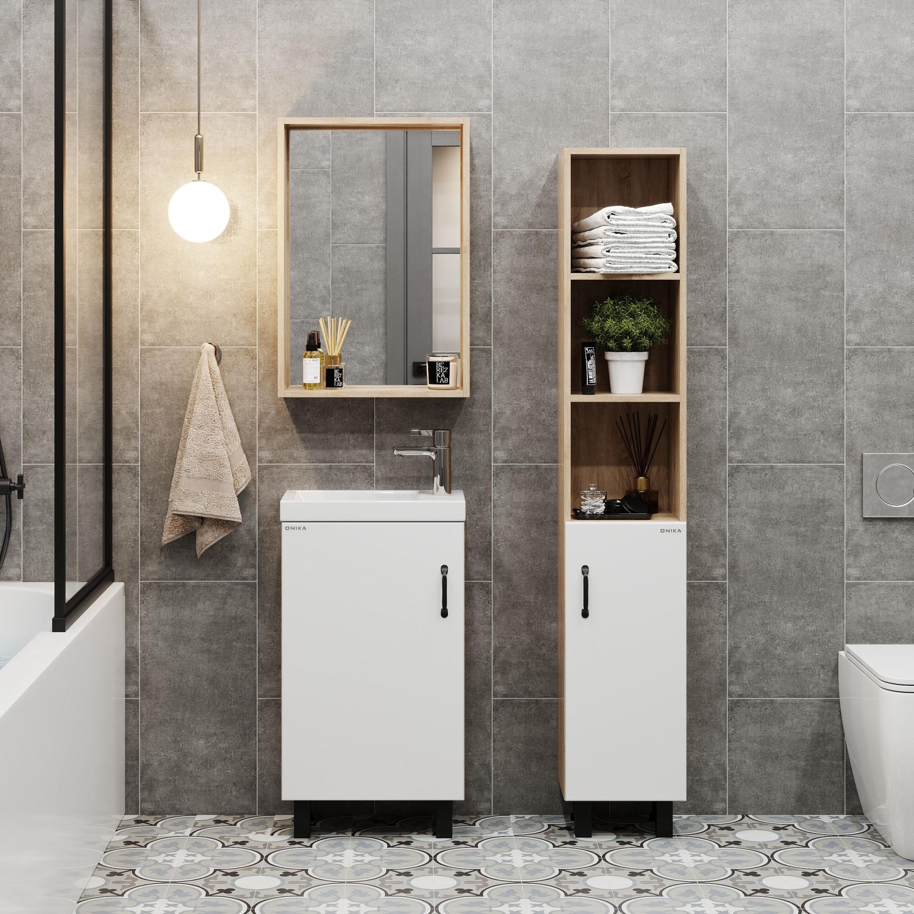 Зеркало в ванную комнату Onika ТИМБЕР 48 отражает современные тенденции в дизайне мебели для ванных комнат: минимализм с простыми и понятными формами, цвета дуба с роскошной текстурой, отсутствие лишних деталей.
