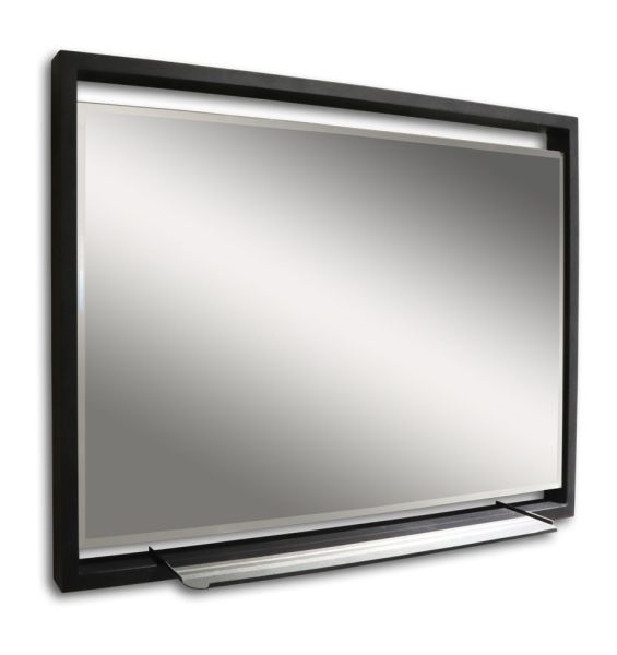 Зеркало с LED-подсветкой в стильной раме черного цвета. Оригинальность данного зеркала - подсветка, встроенная в раму, свечение которой подчеркивает матовую поверхность и строгую геометрию форм.Металлическая полочка позволит расположить все самое необходимое